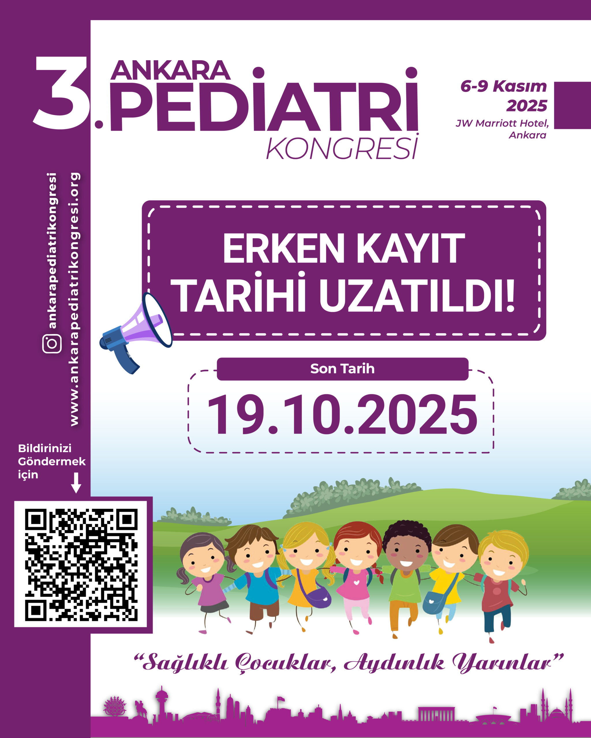 Bu yıl üçüncüsünü düzenleyeceğimiz Ankara Pediatri Kongresi’nin 6-9 Kasım 2025 tarihlerinde Ankara JW Marriott Hotel’de yapılacağını duyurmaktan mutluluk duymaktayız. Cumhuriyetimizin 100. Yılı’nda büyük başarı ile tamamladığımız 1. Ankara Pediatri Kongresi ve ardından gerçekleştirdiğimiz 2. Ankara Pediatri Kongresi yoğun ilgi ve katılımla bilimsel bir şölen olarak gerçekleşti. Bu yıl da geleceğimiz olan çocukların...